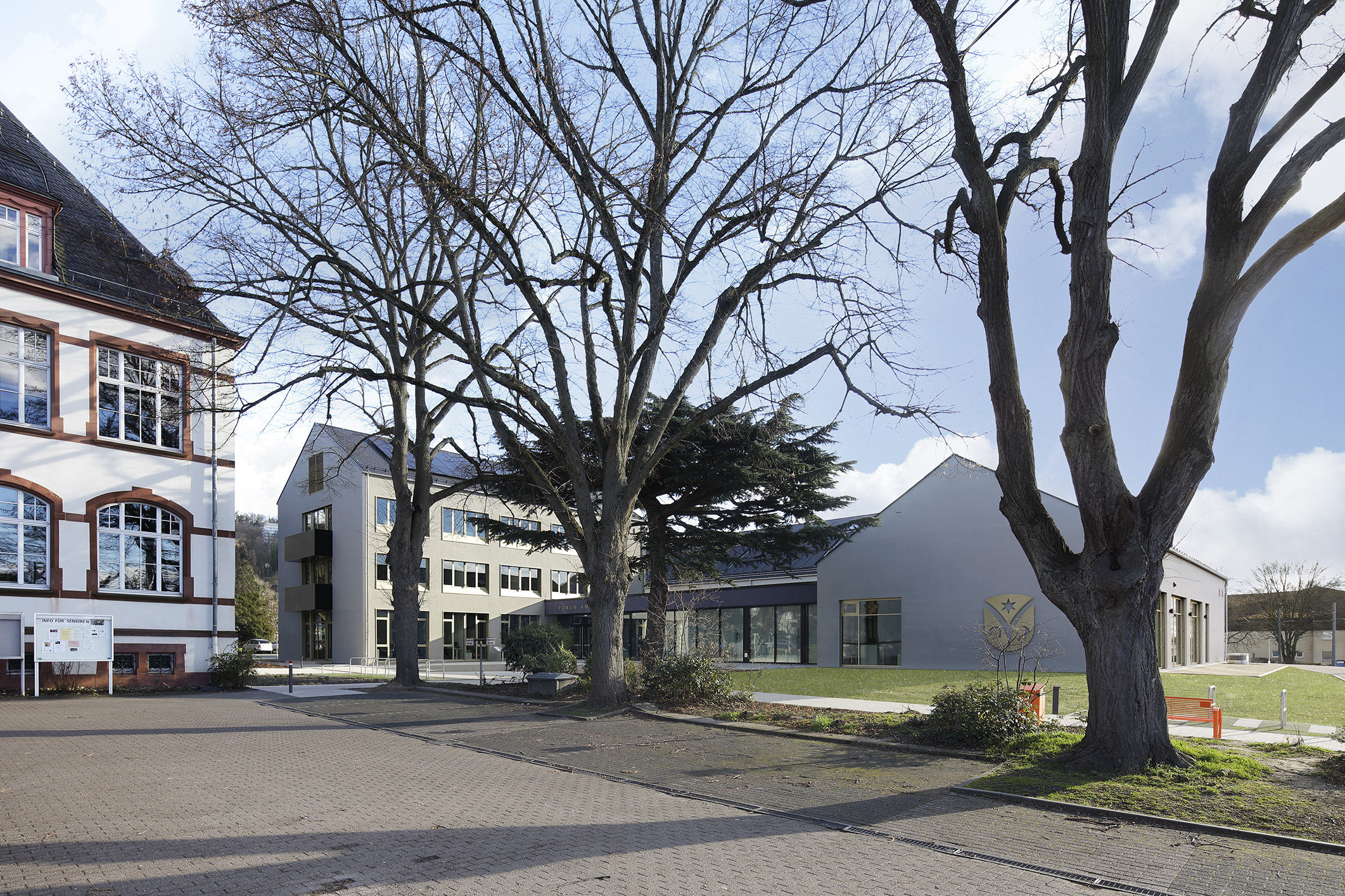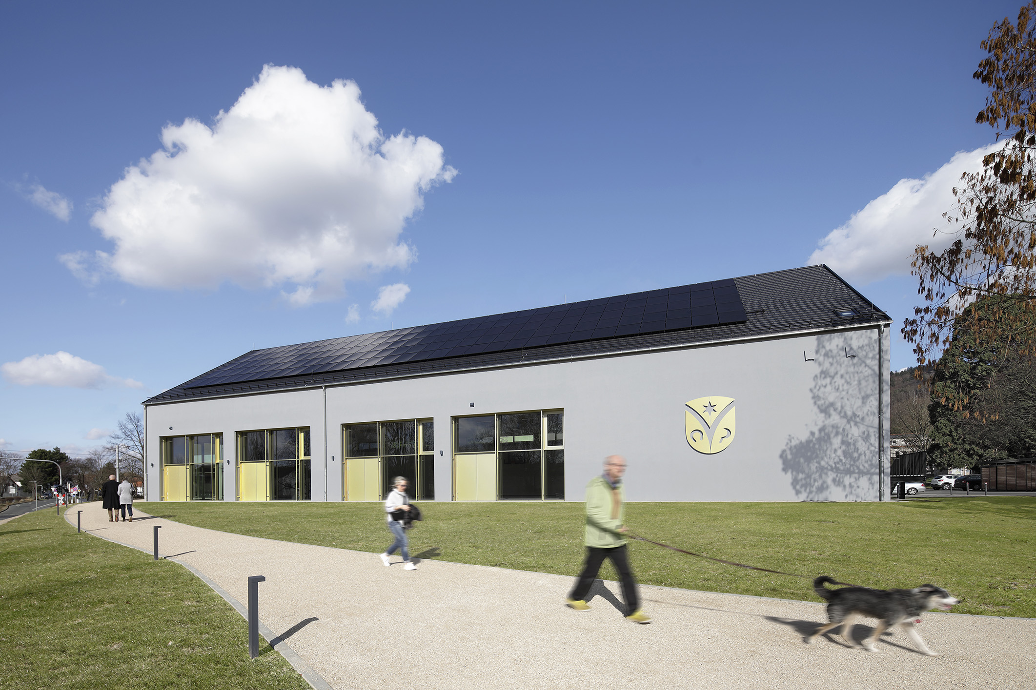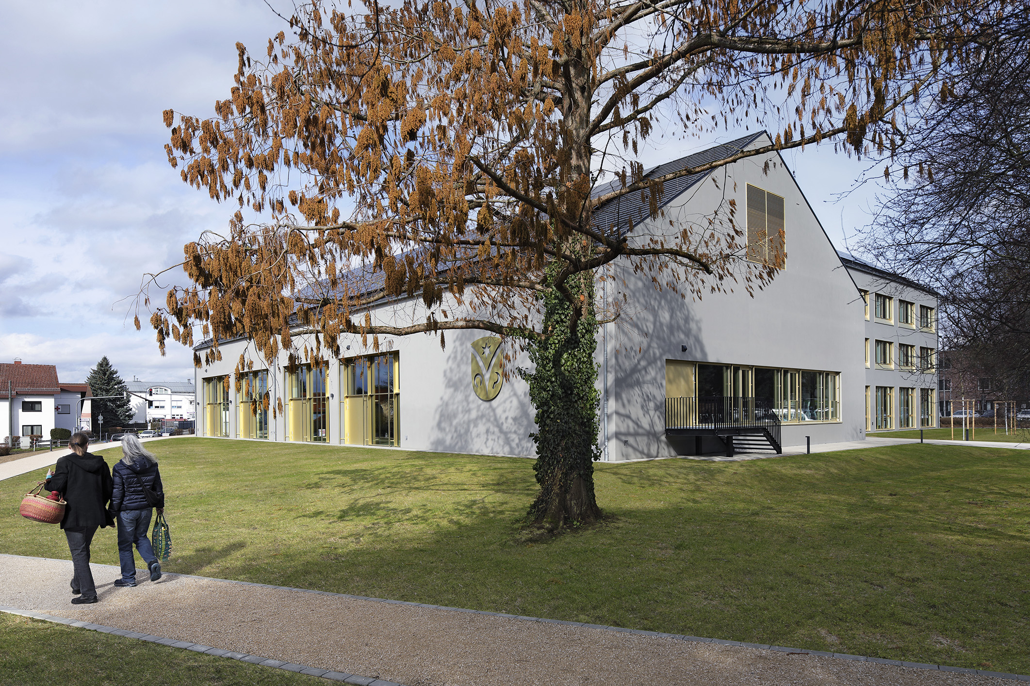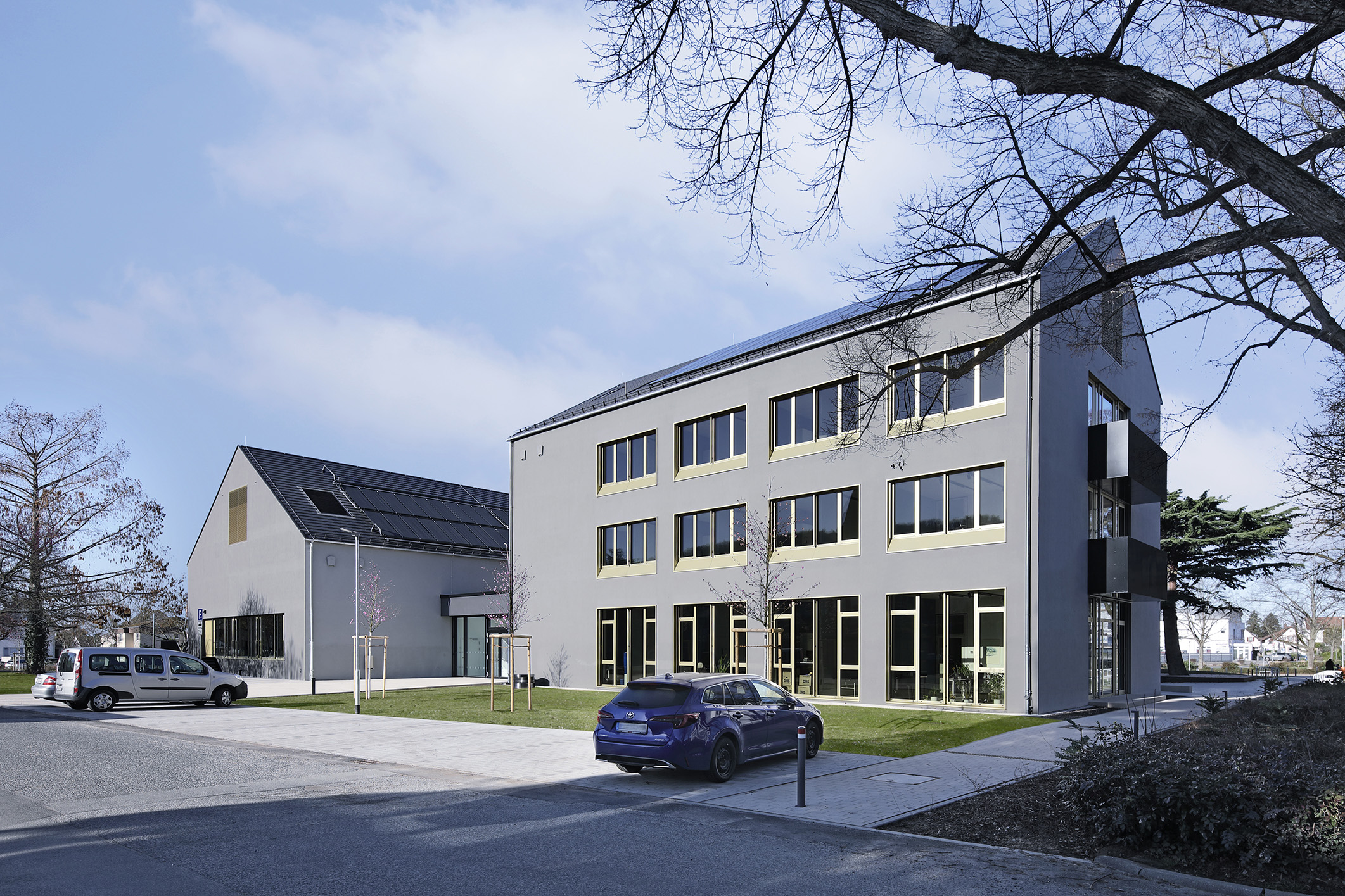 Seeheim-Jugenheim, eine im Jahr 1977 durch die hessische Gebietsreform geformte Kommune, beheimatet heute rund 16.000 Einwohner in sieben Ortsteilen. Das pulsierende Zentrum bildet der Ortsteil Seeheim, der mit etwa 9.000 Bewohnern nicht nur der bevölkerungsreichste Teil ist, sondern durch seine Lage an der Bergstraße auch von einem besonders milden Klima profitiert. Diese klimatische Besonderheit prägt die Landschaft nachhaltig und macht sie zu einem fruchtbaren Kulturraum für Wein-, Obst- und Edelkastanienanbau. Der gesellschaftliche Mittelpunkt konzentriert sich auf den Villenave-d´Ornon-Platz rund um die alte Schule, die heute als Amtssitz des Bürgermeisters dient. Dieses Areal ist geprägt von einer harmonischen Mischung aus Wohngebäuden, Einzelhandel und weitläufigen Parkanlagen, die den Übergang zwischen gewachsener Dorfstruktur und freier Natur markieren. Den südlichen Abschluss dieses Bereichs bildete lange Zeit die 1970 errichtete Sport- und Kulturhalle, die jedoch im Jahr 2016 aufgrund schwerwiegender baulicher Mängel stillgelegt werden musste. Die ursprüngliche Planung für die Erneuerung sah vor, das Gebäude bis zur Kellerdecke zurückzubauen und auf den bestehenden Fundamenten neu zu errichten, wobei man sich eng an der ursprünglichen Grundfläche orientierte. Nach einer detaillierten Untersuchung des Bestands wurde dieses Vorhaben jedoch revidiert. Da die Sanierung des alten Kellers wirtschaftlich kaum Vorteile gegenüber einem Neubau bot, entschied man sich für einen vollständigen Ersatzbau, der modernen technischen Standards entspricht. Das architektonische Konzept des Neubaus geht weit über eine reine Funktionshalle hinaus und sieht ein vielseitiges Bürgerzentrum vor. Um die unterschiedlichen Anforderungen von Verwaltung, Mediathek, Archiv und Sportstätten unter ein Dach zu bringen, wurde der Entwurf eines „Dorfes“ in Form eines Dreiseithofs gewählt. Mit ihren charakteristischen Satteldächern passen sich die drei Baukörper optisch der lokalen Topografie an und vermitteln durch ihre Kleinteiligkeit ein Gefühl von Beständigkeit und Tradition. Ein zentrales Foyer verknüpft die verschiedenen Gebäudeteile zu einer Einheit, während die Neugestaltung der Außenanlagen dafür sorgt, dass das neue Zentrum von allen Seiten zugänglich ist und sich fließend in die bestehenden Wegeverbindungen des Ortes integriert.