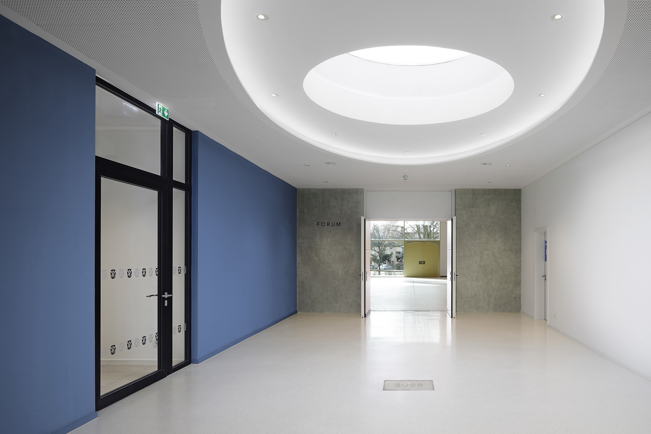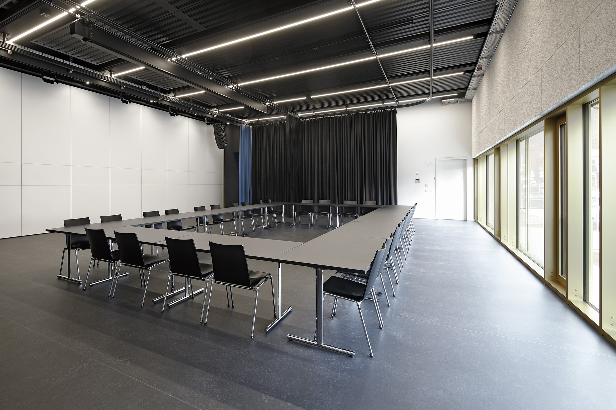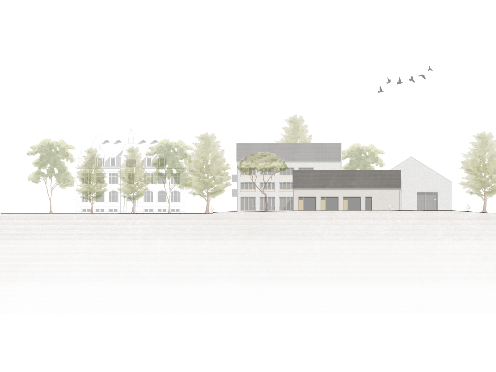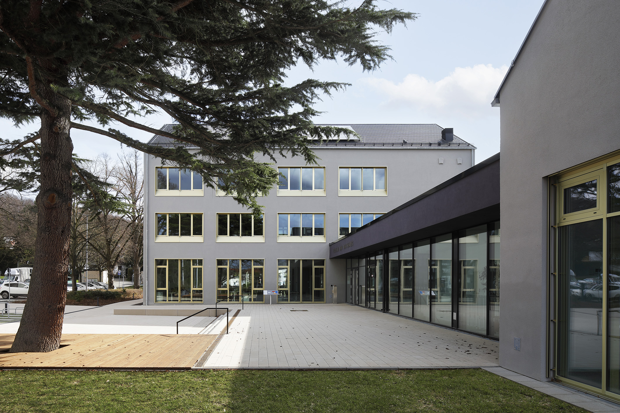Seeheim-Jugenheim, eine im Jahr 1977 durch die hessische Gebietsreform geformte Kommune, beheimatet heute rund 16.000 Einwohner in sieben Ortsteilen. Das pulsierende Zentrum bildet der Ortsteil Seeheim, der mit etwa 9.000 Bewohnern nicht nur der bevölkerungsreichste Teil ist, sondern durch seine Lage an der Bergstraße auch von einem besonders milden Klima profitiert. Diese klimatische Besonderheit prägt die Landschaft nachhaltig und macht sie zu einem fruchtbaren Kulturraum für Wein-, Obst- und Edelkastanienanbau. Der gesellschaftliche Mittelpunkt konzentriert sich auf den Villenave-d´Ornon-Platz rund um die alte Schule, die heute als Amtssitz des Bürgermeisters dient. Dieses Areal ist geprägt von einer harmonischen Mischung aus Wohngebäuden, Einzelhandel und weitläufigen Parkanlagen, die den Übergang zwischen gewachsener Dorfstruktur und freier Natur markieren. Den südlichen Abschluss dieses Bereichs bildete lange Zeit die 1970 errichtete Sport- und Kulturhalle, die jedoch im Jahr 2016 aufgrund schwerwiegender baulicher Mängel stillgelegt werden musste. Die ursprüngliche Planung für die Erneuerung sah vor, das Gebäude bis zur Kellerdecke zurückzubauen und auf den bestehenden Fundamenten neu zu errichten, wobei man sich eng an der ursprünglichen Grundfläche orientierte. Nach einer detaillierten Untersuchung des Bestands wurde dieses Vorhaben jedoch revidiert. Da die Sanierung des alten Kellers wirtschaftlich kaum Vorteile gegenüber einem Neubau bot, entschied man sich für einen vollständigen Ersatzbau, der modernen technischen Standards entspricht. Das architektonische Konzept des Neubaus geht weit über eine reine Funktionshalle hinaus und sieht ein vielseitiges Bürgerzentrum vor. Um die unterschiedlichen Anforderungen von Verwaltung, Mediathek, Archiv und Sportstätten unter ein Dach zu bringen, wurde der Entwurf eines „Dorfes“ in Form eines Dreiseithofs gewählt. Mit ihren charakteristischen Satteldächern passen sich die drei Baukörper optisch der lokalen Topografie an und vermitteln durch ihre Kleinteiligkeit ein Gefühl von Beständigkeit und Tradition. Ein zentrales Foyer verknüpft die verschiedenen Gebäudeteile zu einer Einheit, während die Neugestaltung der Außenanlagen dafür sorgt, dass das neue Zentrum von allen Seiten zugänglich ist und sich fließend in die bestehenden Wegeverbindungen des Ortes integriert.